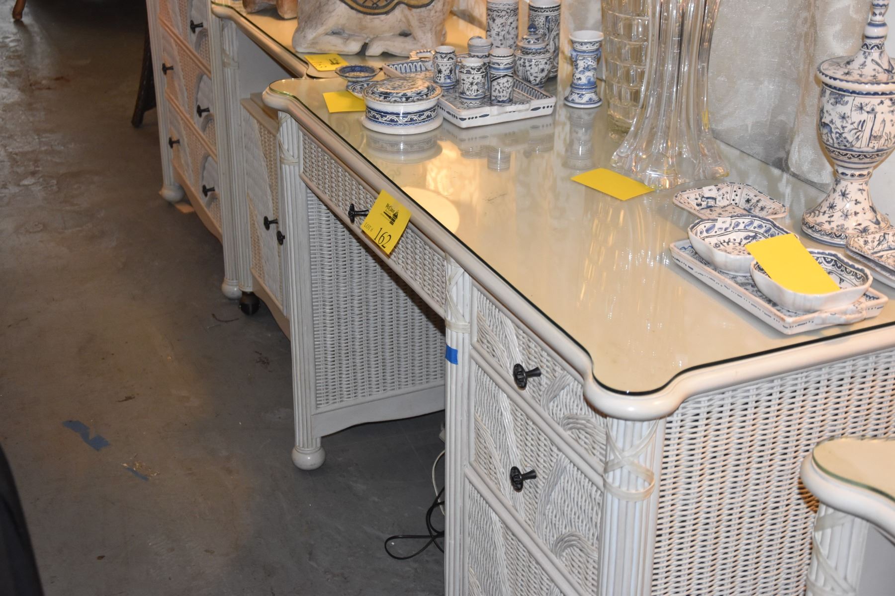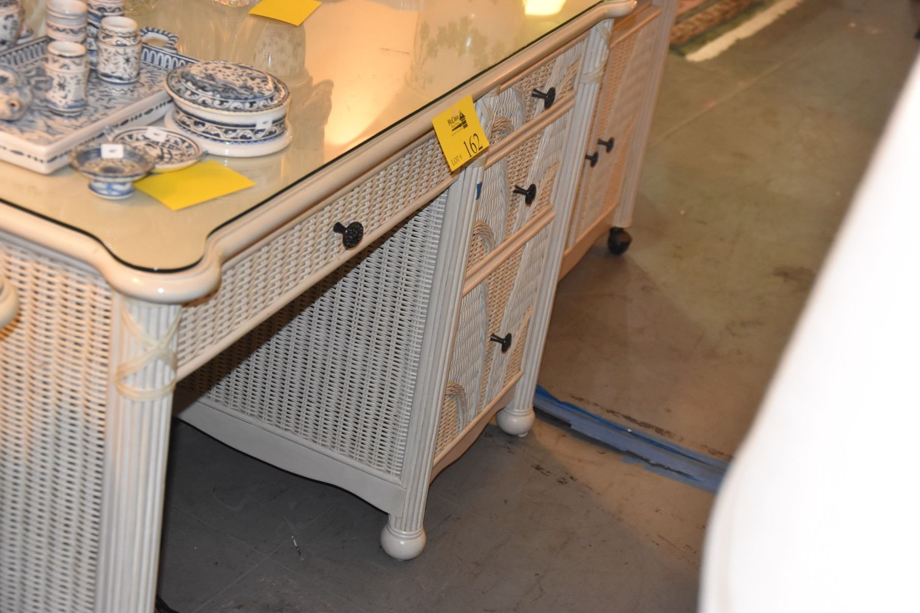 WHITE WICKER 4 DRAWER DESK W/GLASS TOP