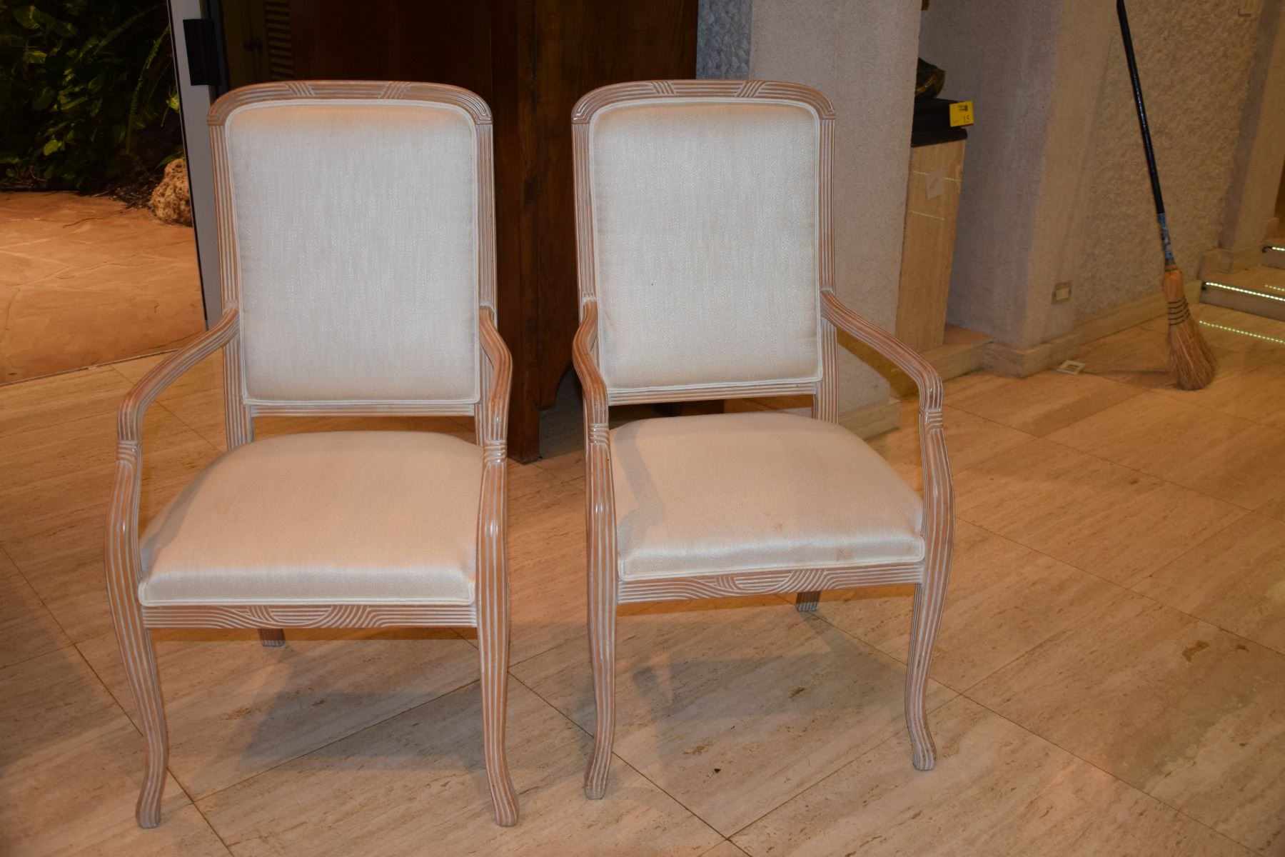 WHITEWASH UPHOLSTERED ARM CHAIRS (2 PCS)