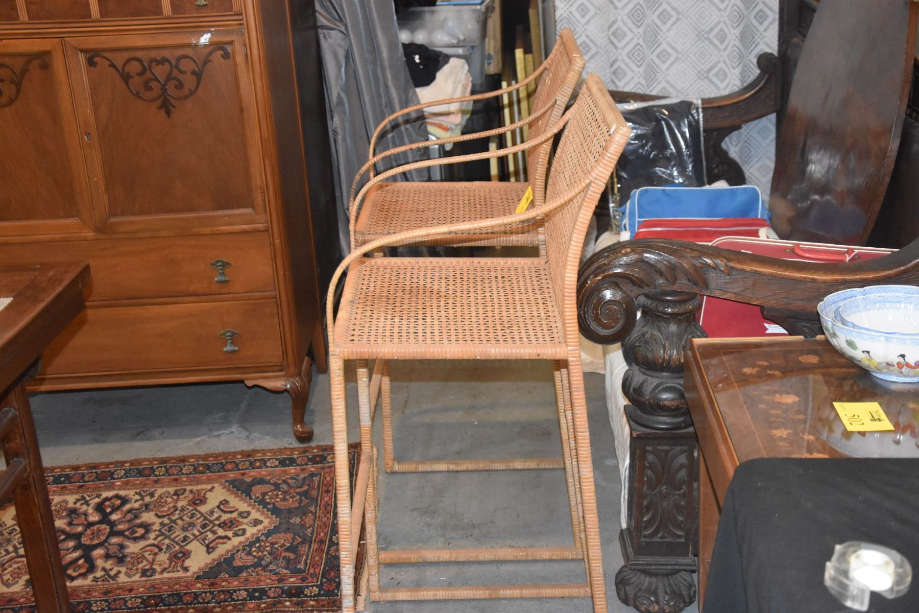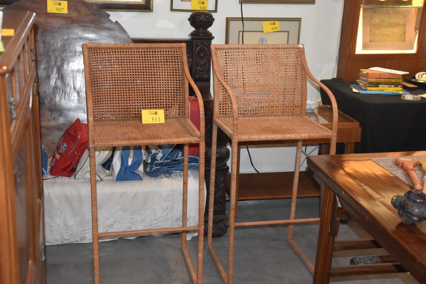 WICKER BAR STOOLS W/ARMS (PAIR)