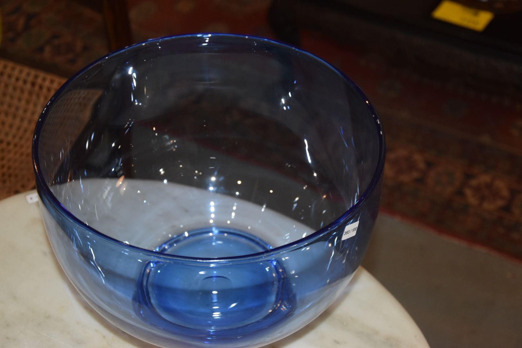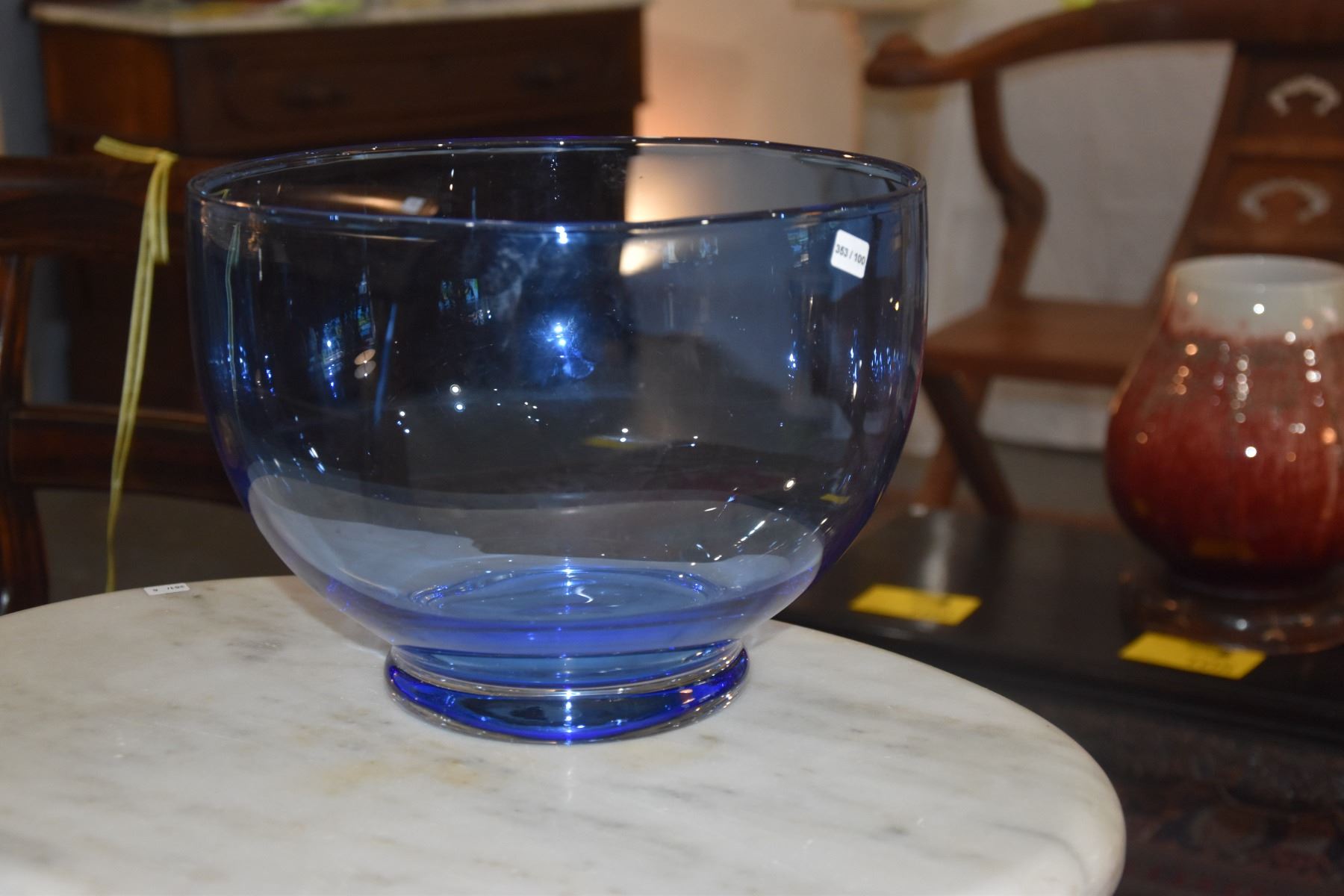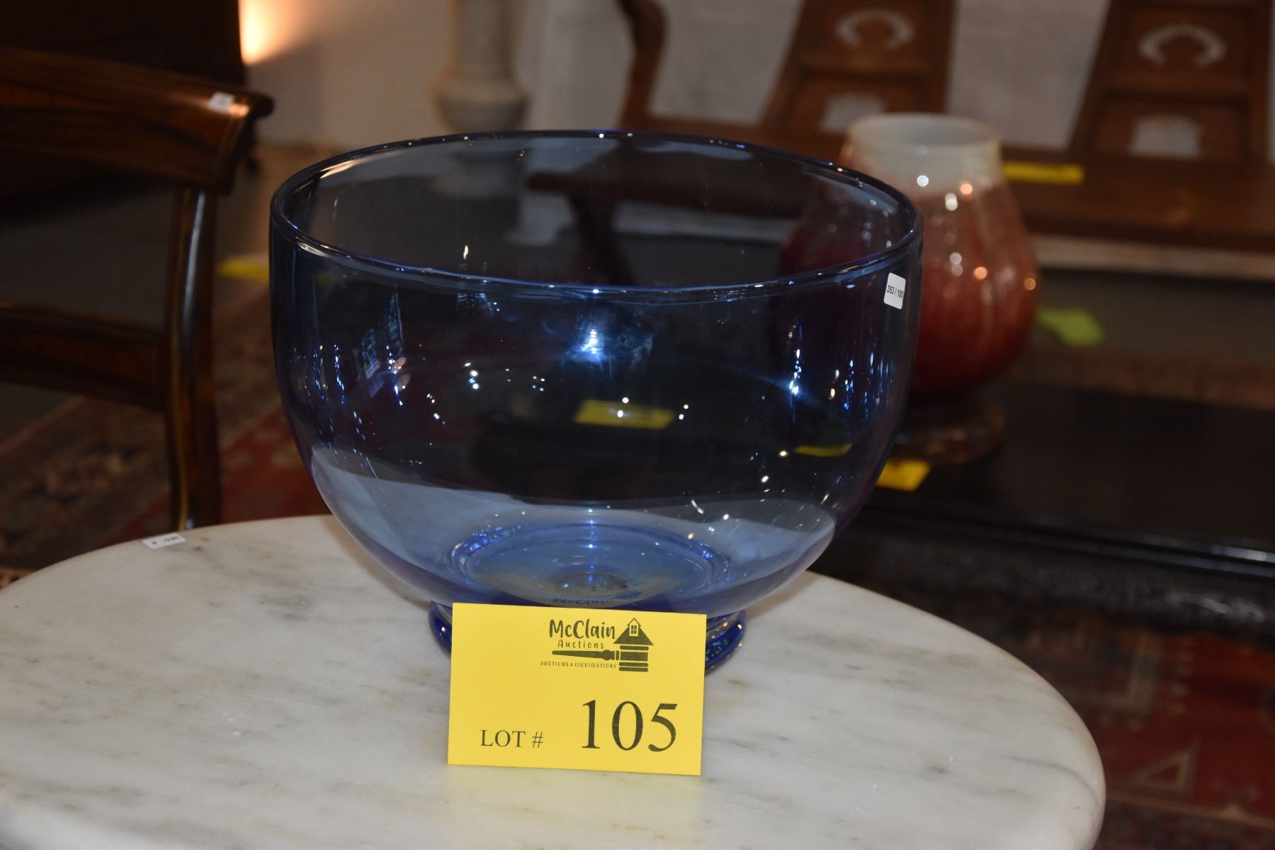 WILLIAM YEOWARD EXTRA LARGE BLUE CRYSTAL FOOTED BOWL W/BOX, "ELLEN"; SIGNED