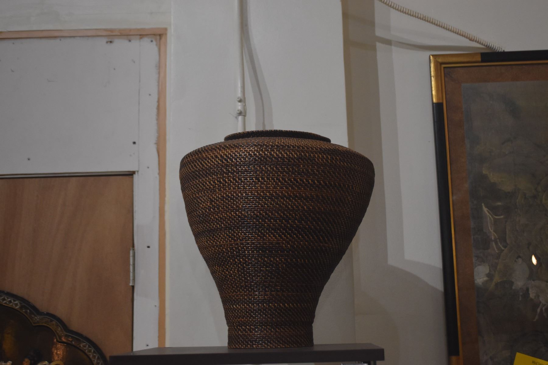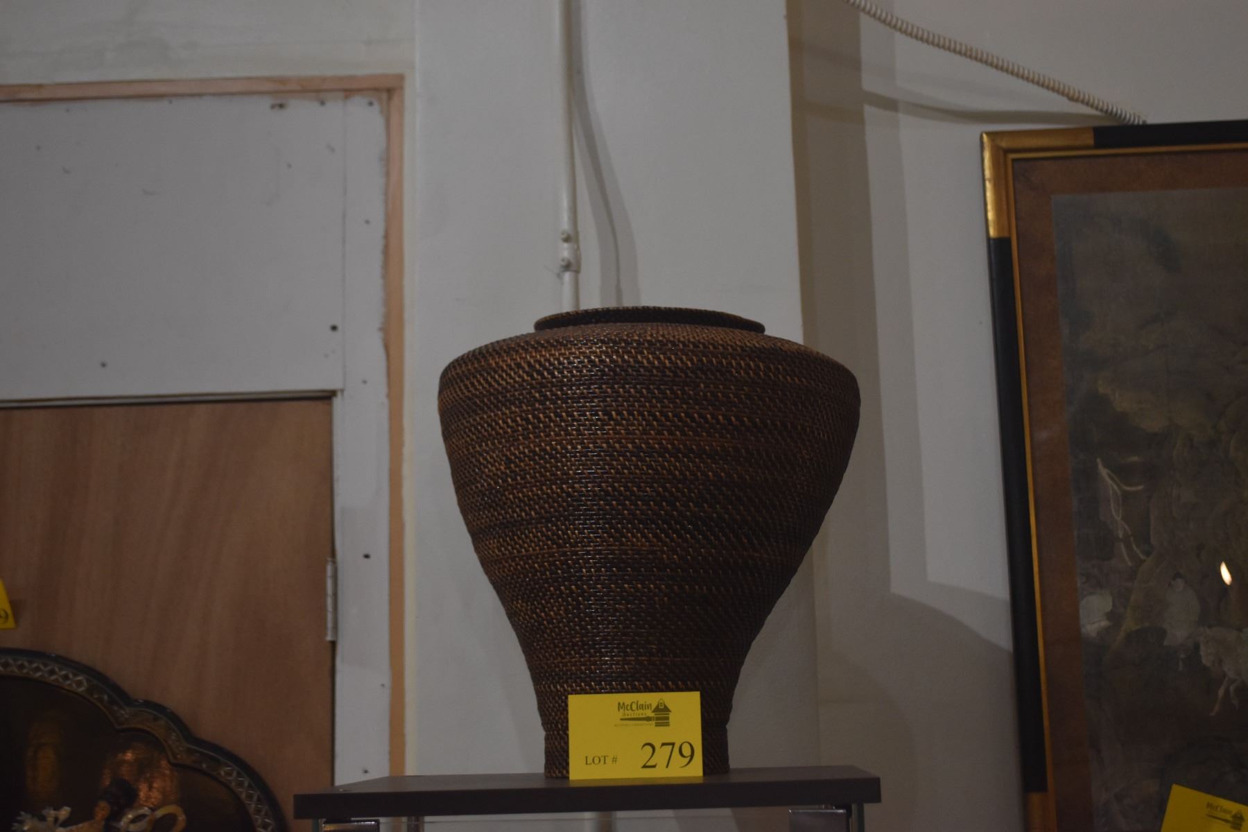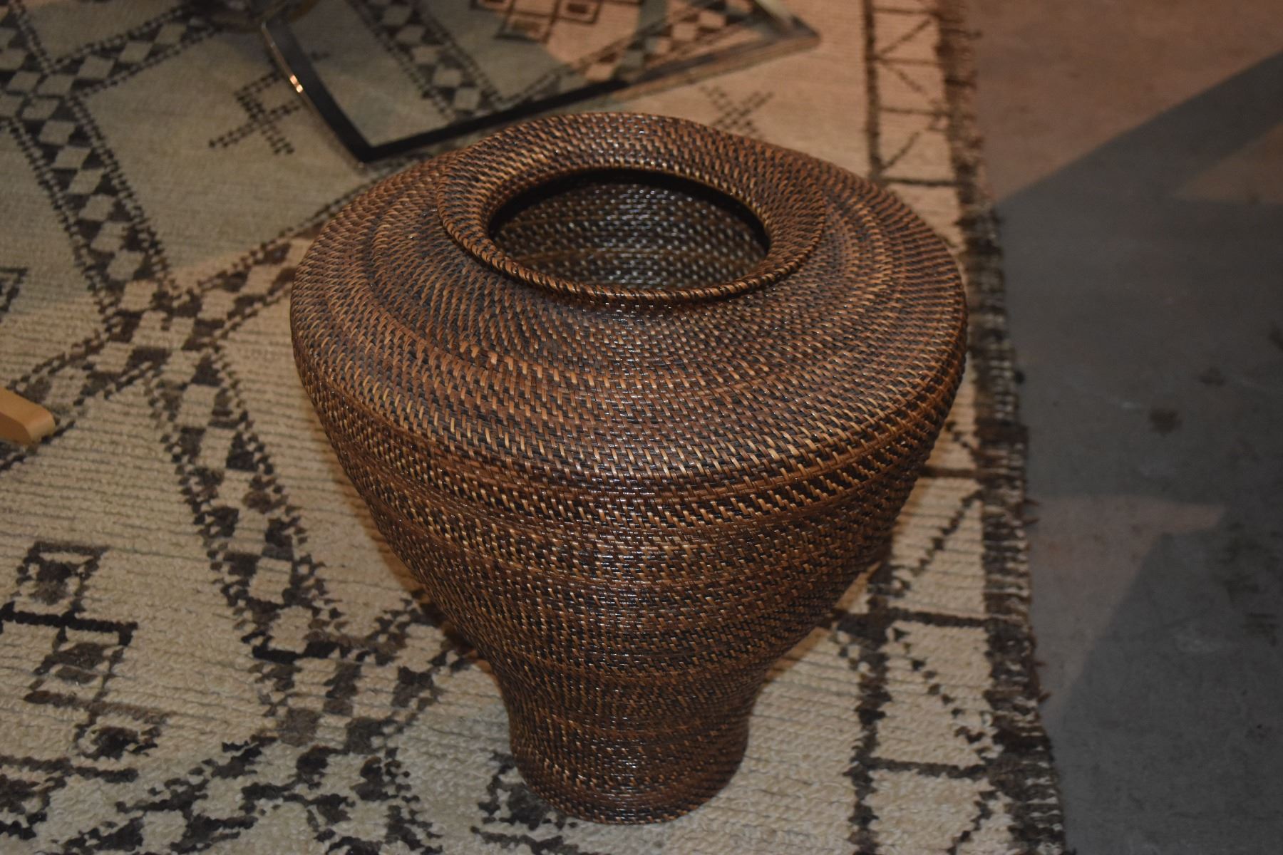 WILLIAMS SONOMA WOVEN URN BASKET (16" X 14")