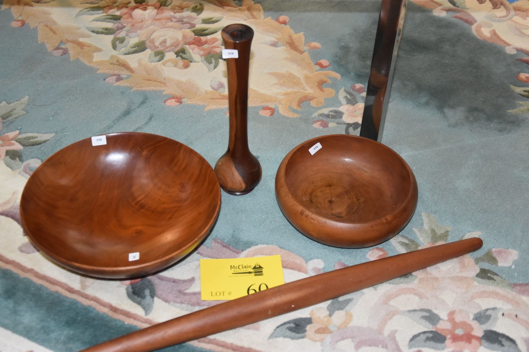 WOOD BOWLS, ROLLING PIN & MILO VASE (4 PCS)
