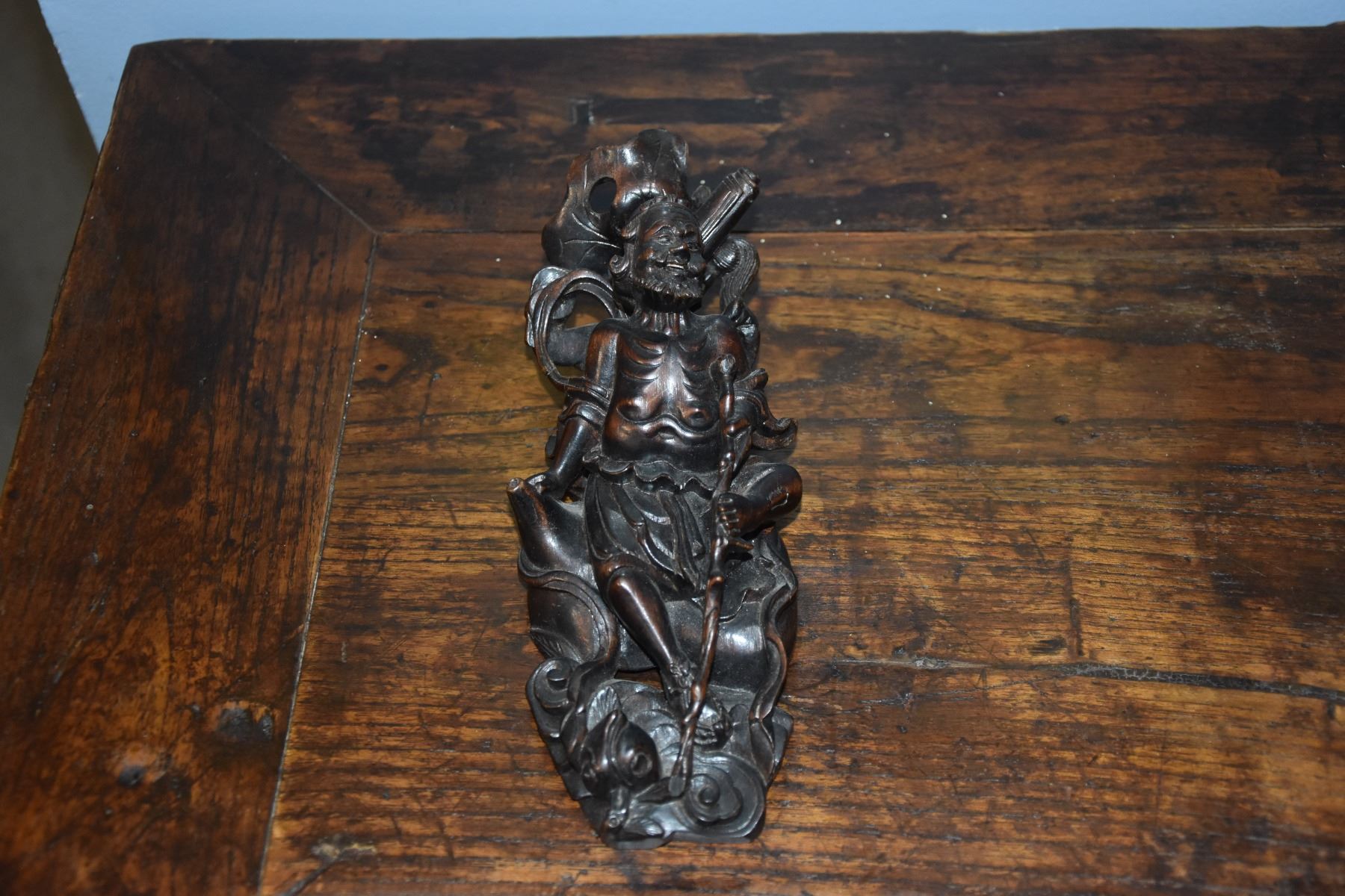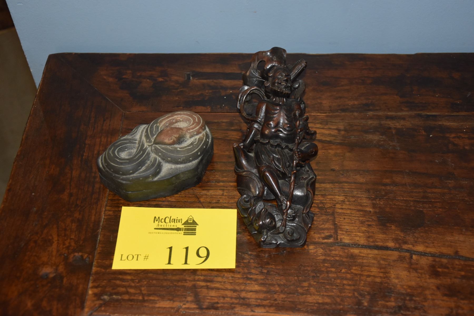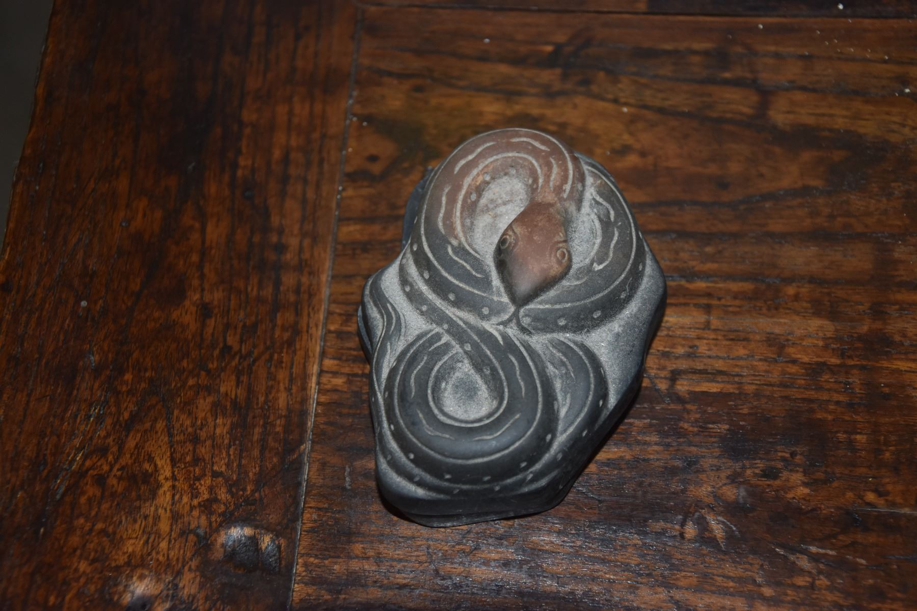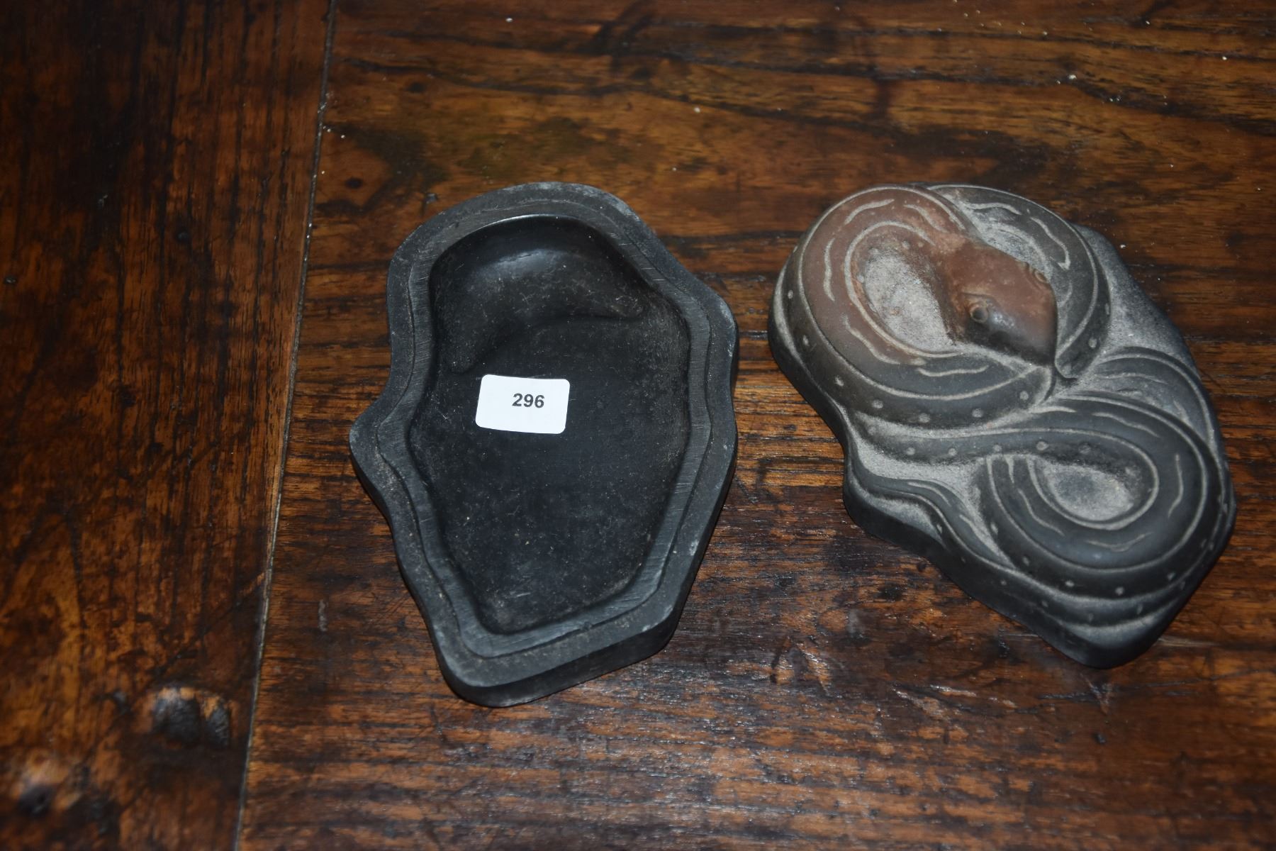 WOOD CARVING & COVERED INK WELL W/SNAKE MOTIF (2 PCS)