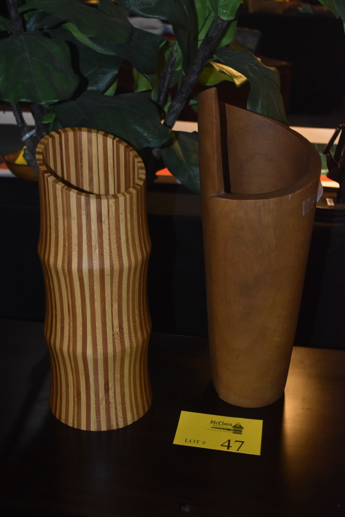 WOOD VASES (14") (DOES NOT INCLUDE FLOWERS & MAT)