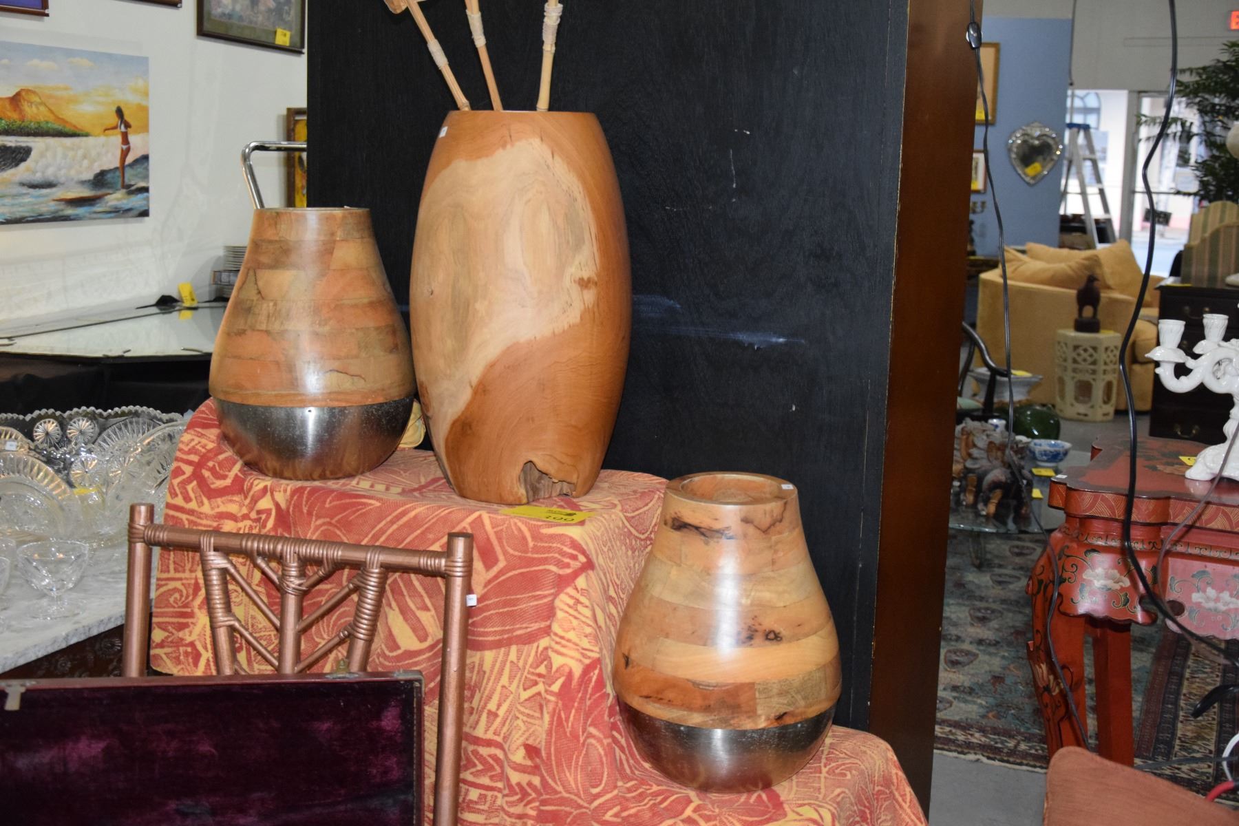 WOOD VASES W/BAMBOO & LAUHALA DECOR (6 PCS)