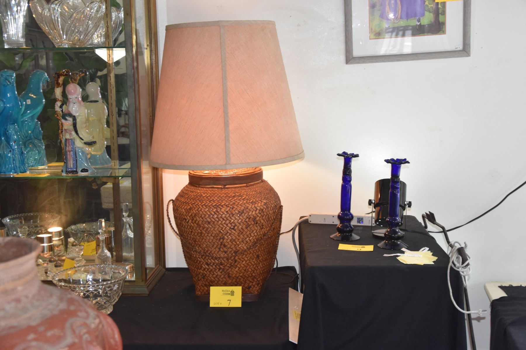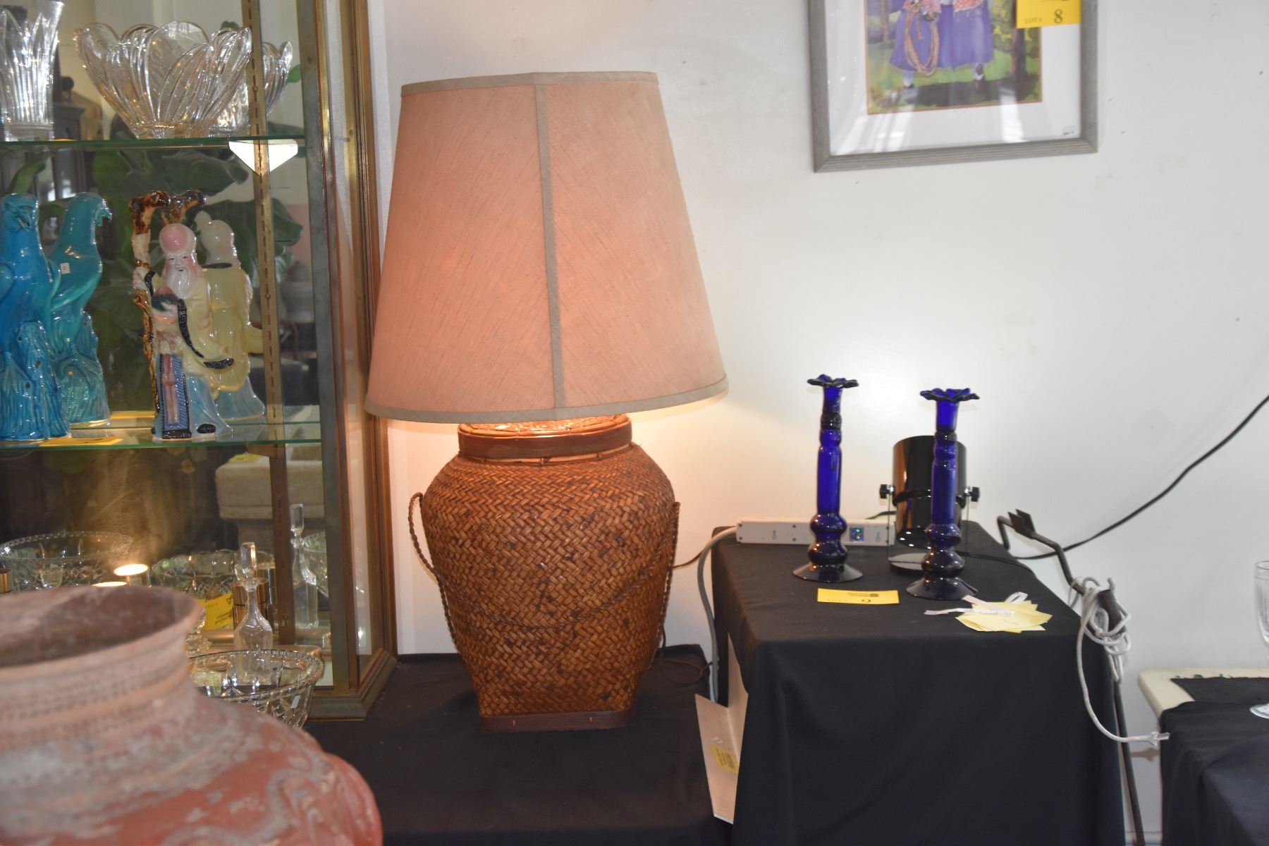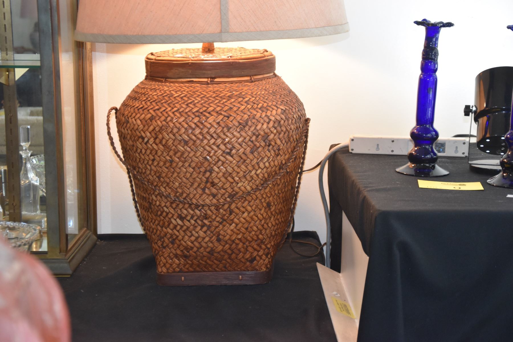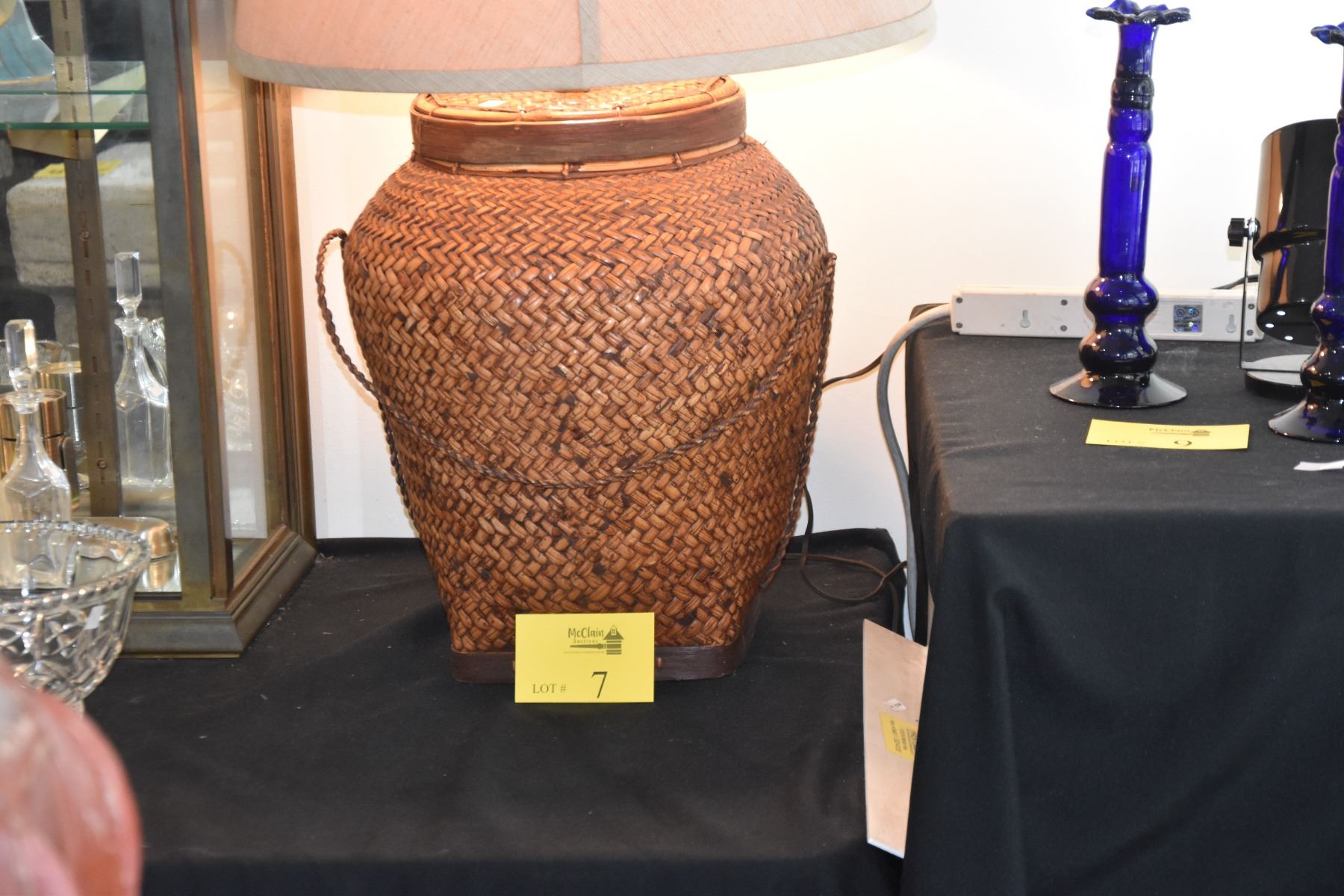 WOVEN BASKET STYLE TABLE LAMP W/SHADE