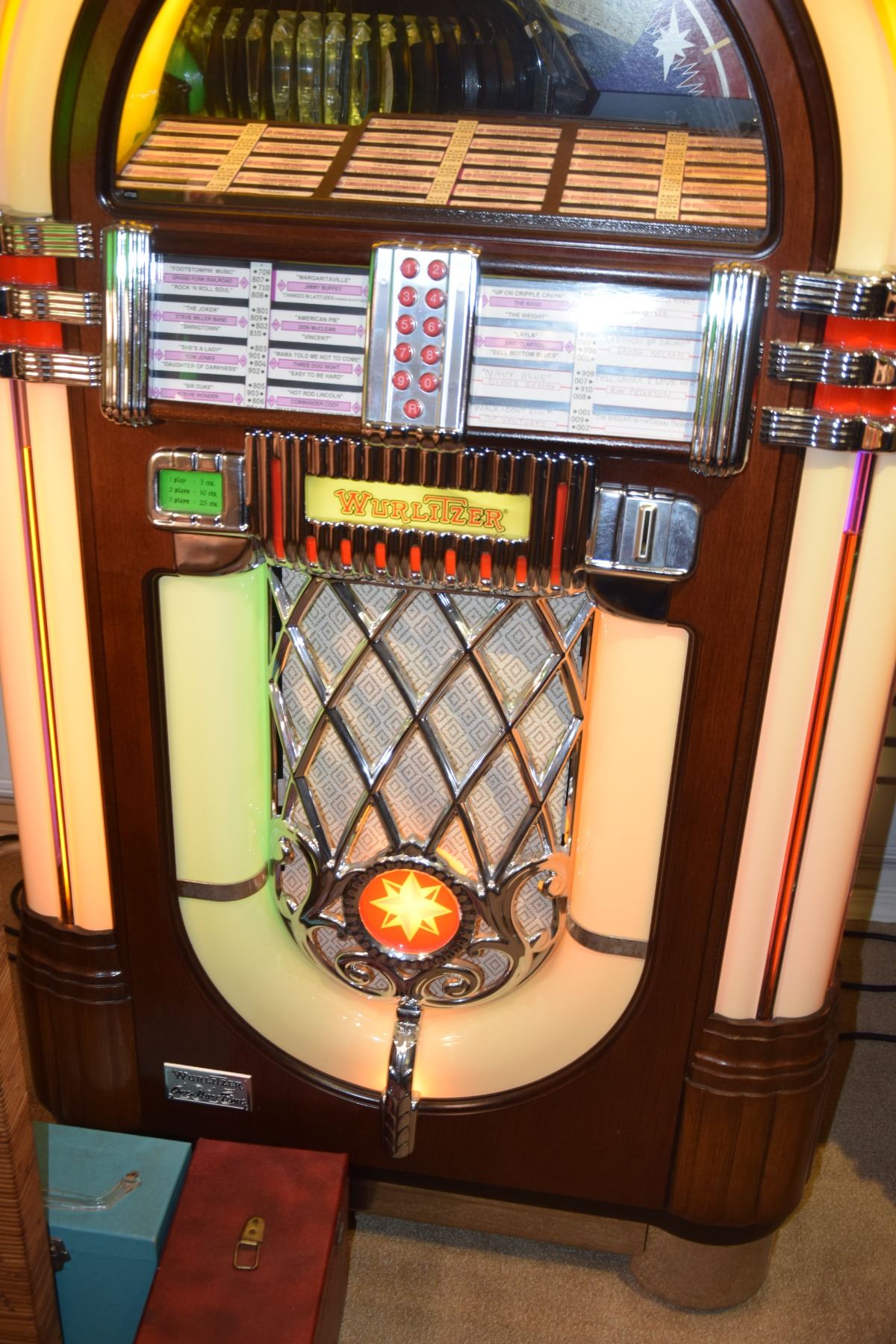 WURLITZER-ONE MORE TIME REPLICA JUKE BOX -VINYL, MODEL OMT 1015 W/EXTRA RECORDS