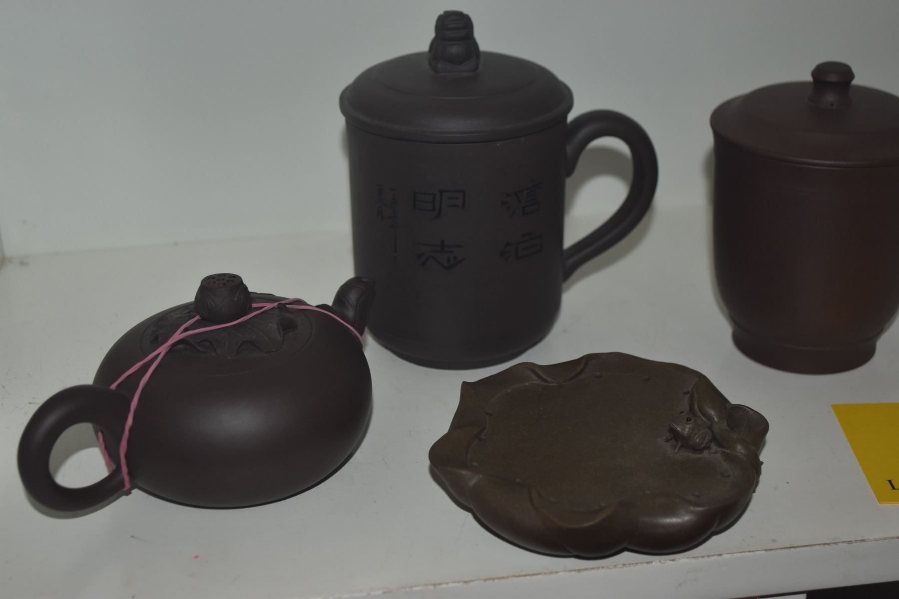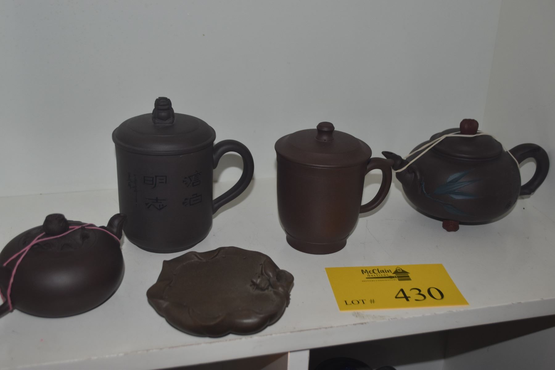 ZISHA TEAPOTS, COVERED CUPS & WATER DROPPER (5 PCS)